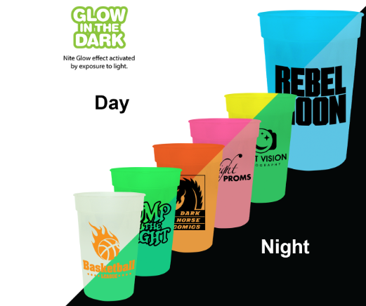 Glow in the dark Nite glow effect activated by exposure to light. Perfect for Halloween events and gift shops. BPA Free. 5" H x 3 7/16" Diameter