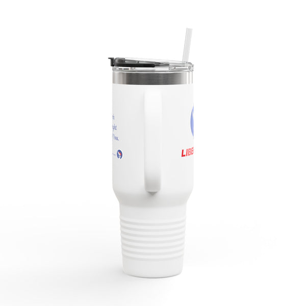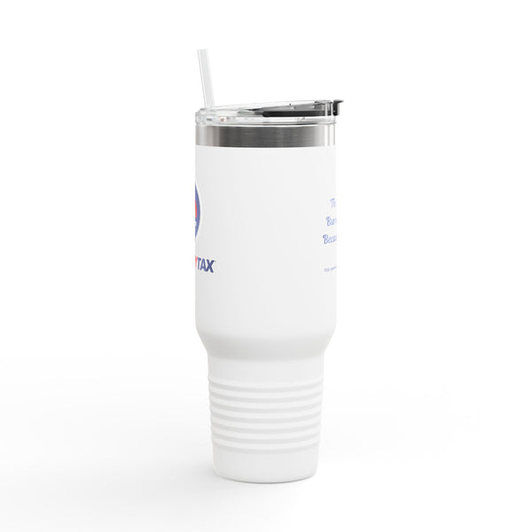 Sip in style and comfort with this elevated travel mug — a daily reminder that The Torch Burns Bright Because of You. Featuring your franchise owner’s personalized signature following the words With appreciation —, this mug makes every coffee break feel personal and valued. The Liberty Torch logo on the reverse side completes the design, representing pride, excellence, and unity across every tax season.