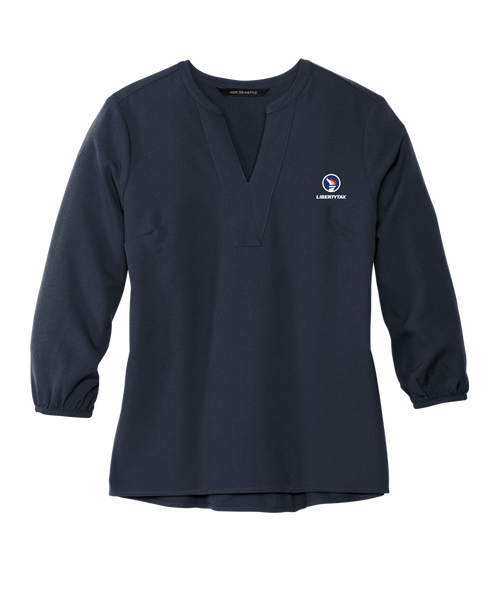 Offering a stylish look for desk-to-dinner wear, this silhouette is distinguished with a fine, free-flowing crepe fabric and a relaxed fit. The stay-put elastic cuffs mean no rolling necessary. Hem reaches low at the hips with a slight drop tail for elegant drape.